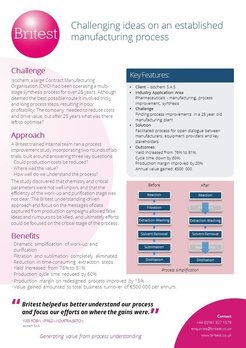 Read how the use of the Britest tools and approach encouraged chemists and engineers in a large manufacturing organisation to address a problem in pressure filtration which had been dragging on for three years - saving the business £500K a year.